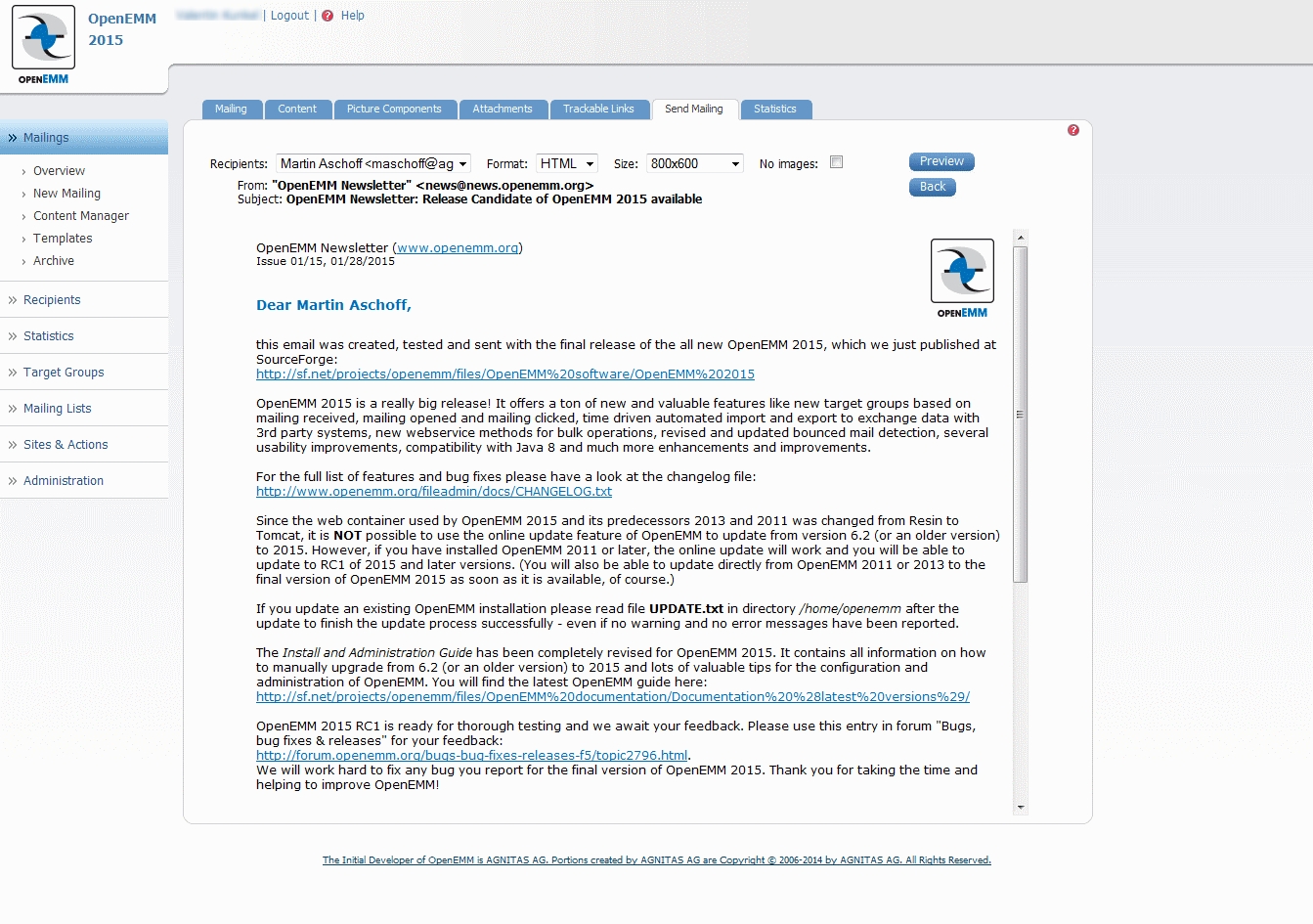 OpenEMM 2015: New Functions for the free E-mail Marketing Software